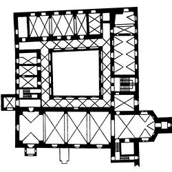 Das Klostergebäude ist ein 2-geschoßiger Dreiflügelbau mit Satteldach. Es schließt direkt an die Nordseite der Kirche an, mit der es einen annähernd quadratischen Grundriss bildet.